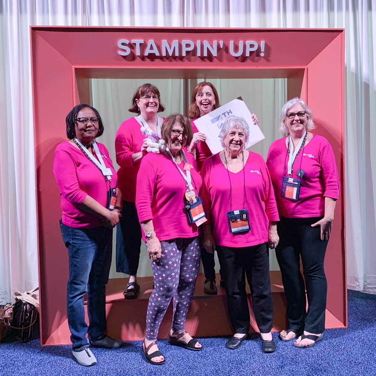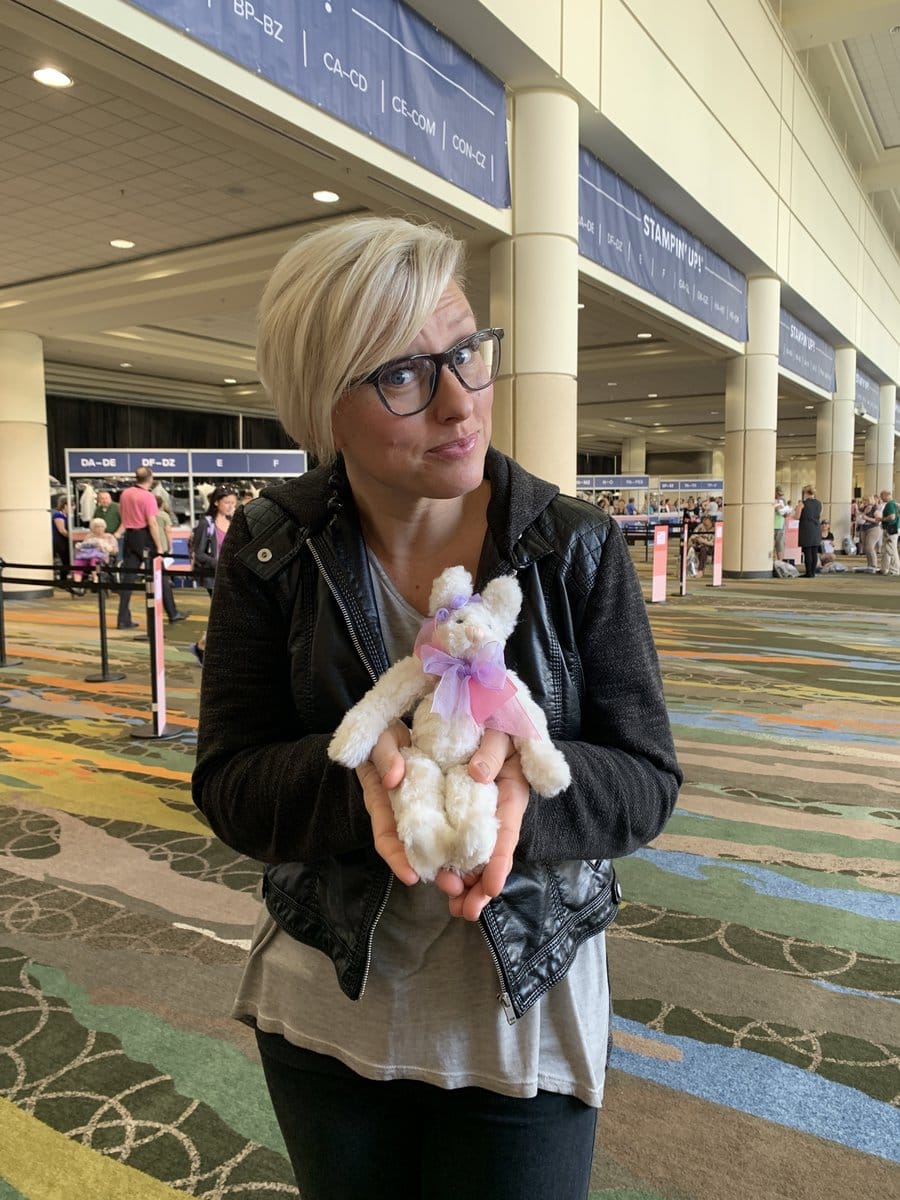 The Candy Hearts team has a new mascot. She had her photo taken with lots of people at OnStage. Here she is with Sara Douglass, CEO of Stampin’ Up!