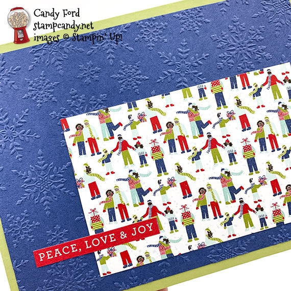 Today I’m sharing another 3D Pop Up Card. When my some members of my Candy Hearts team saw the one I posted last week, which you can see here, they requested we make one at our next team meeting, which was yesterday. For today’s card, we used products from the Trimming the Town Suite: Trimming the Town Designer Series Paper and Winter Snow Embossing Folder.