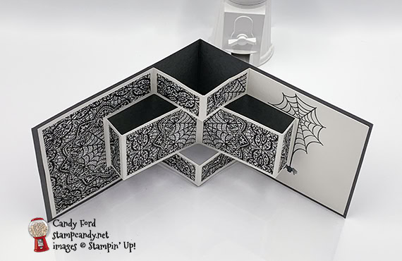 Welcome to the September 2020 Candy Hearts Blog Hop! This month’s theme is Halloween. I used the Festive Corners stamp set, Cobwebs 3D Embossing Folder, and Magic in this Night Designer Series Paper to create a spooky fun 3D Pop Up card.