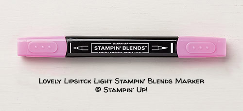 I’ve used Lovely Lipstick as the accent color, but if you’d prefer a different color, just let me know. I’ll cut the appropriate card stock pieces from that color, and I’ll include that color ink pad, and that color Stampin’ Blends Marker (or the best coordinating color.)
