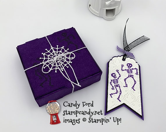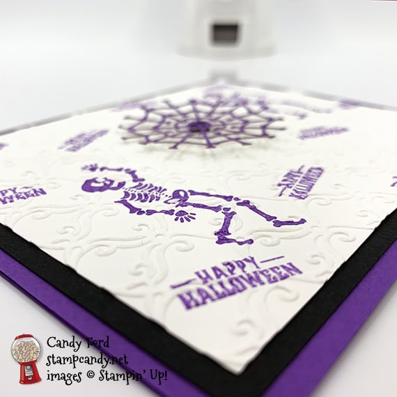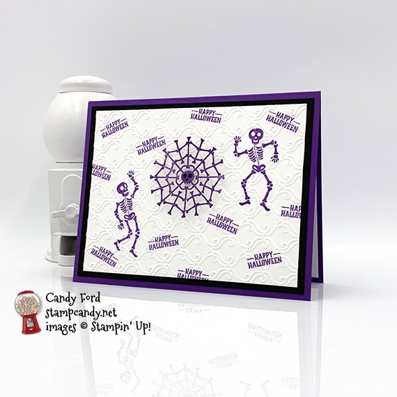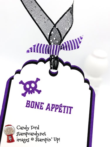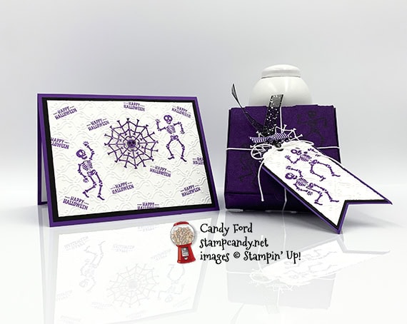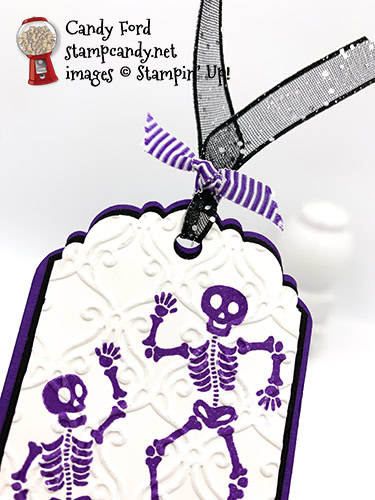 - 2 skeletons in Gorgeous Grape ink onto one of the Whisper White CS tag layers
