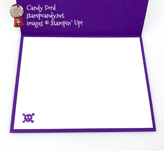 - skull in Gorgeous Grape ink onto the Whisper White CS for the inside of the card base