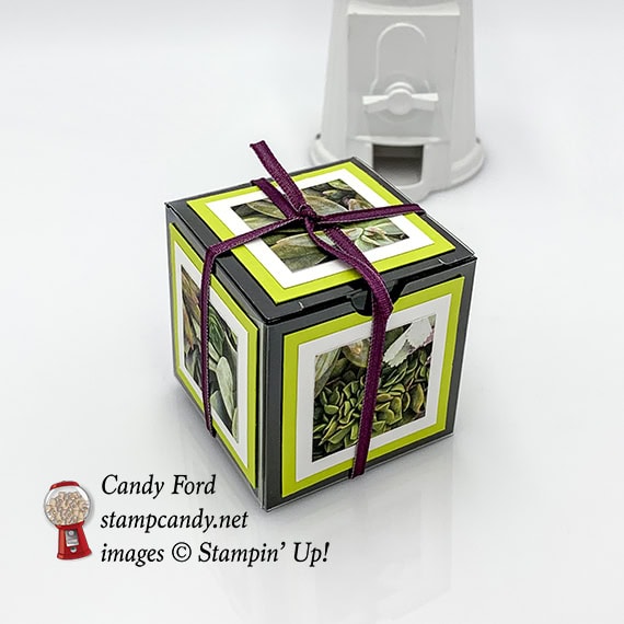 I used a card base and a couple of photographic pieces from the kit along with a few other Stampin’ Up! products for my alternate projects: a card and a gift/treat box. I can’t wait to see what all the talented stampers on the blog hop have come up with for their alternate projects. Be sure to hop all the way around, because you won’t want to miss any of them.