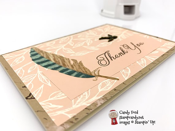 - vellum feather adhered over the sentiment layer using Mini Glue Dots