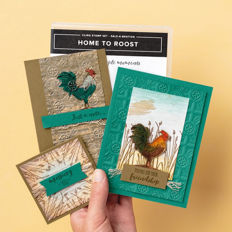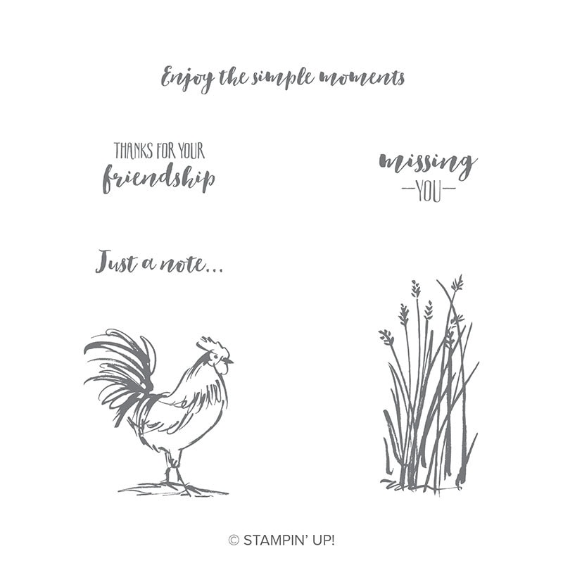 Warm thoughts come home to roost when you create projects with this set. Quantity: 6 cling stamps. Suggested clear blocks (sold separately): b, d, g, h.
