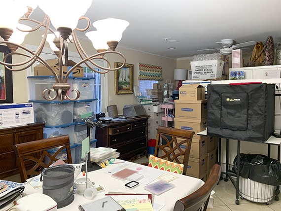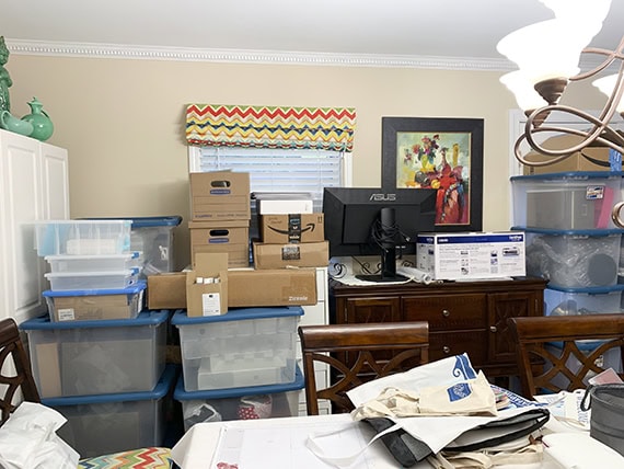 The dining room has been the hardest hit area of the house during the office redo process, with boxes and crates EVERYwhere. I’m slowly but surely clearing them out now.