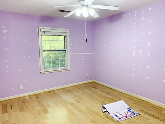 The room was all emptied out. It doesn’t look like much here, but it was ready and waiting to become functional and beautiful. The electrician had been here to move and add outlets. Next the walls and ceiling got patched and painted.