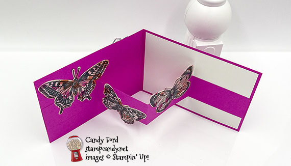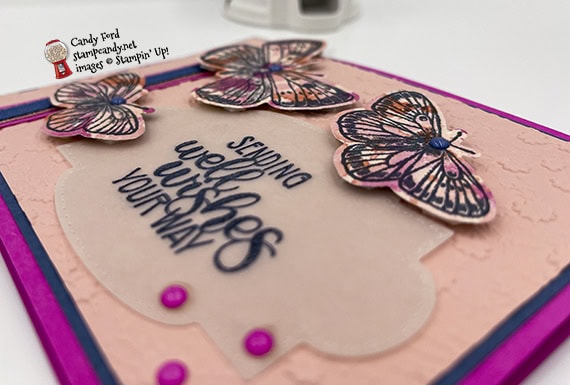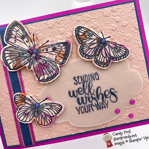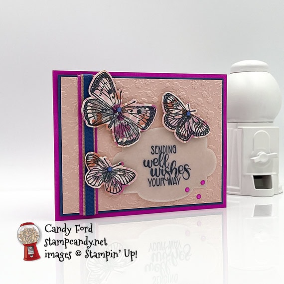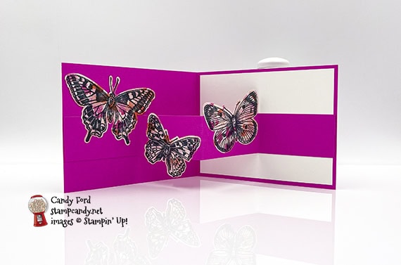 The butterflies are adhered with Stampin’ Dimensionals so they look like they’re flying right off the card.