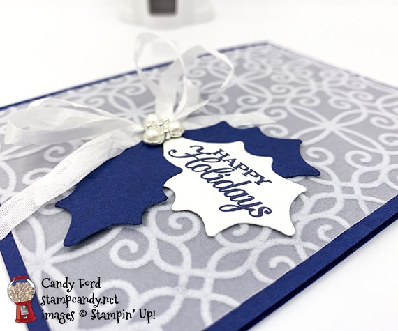 - cut and embossed 2 holly leaves from a scrap of Night of Navy CS
