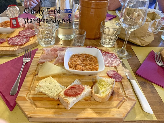 I spent several days in Italy, both before and after the cruise. In the 15 days I was gone, I went on lots of fascinating (and hot!) tours and excursions, in both Italy and Greece. Today I’m sharing photos from my first one to Tuscany. We saw lots of picturesque countryside, and visited the villages of Montepulciano and Pienza, as well as the Abbey Of Sant`Antimo. And we had a delicious lunch at a small vineyard.